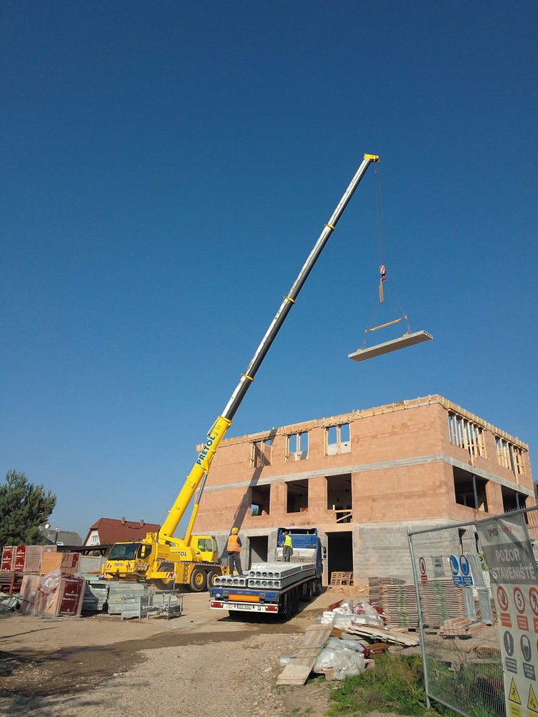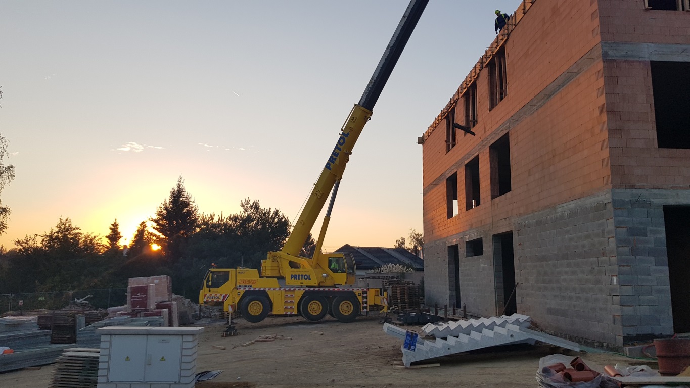 11. října počasí stavařům přálo. Podávali jsme betonové panely