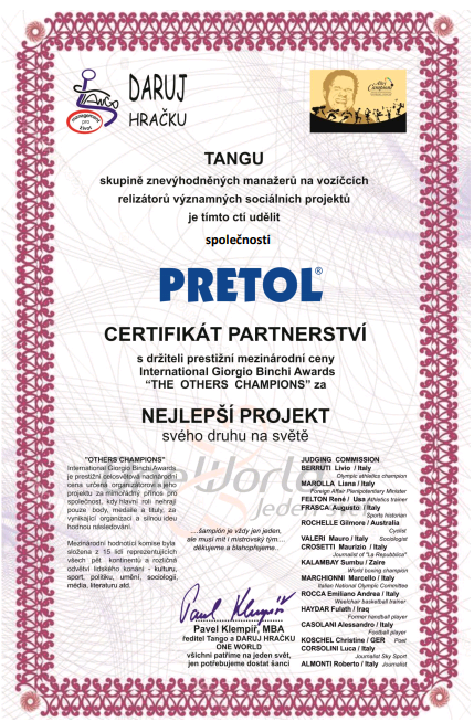 PRETOL s.r.o. podporuje dobrou věc. Proč?